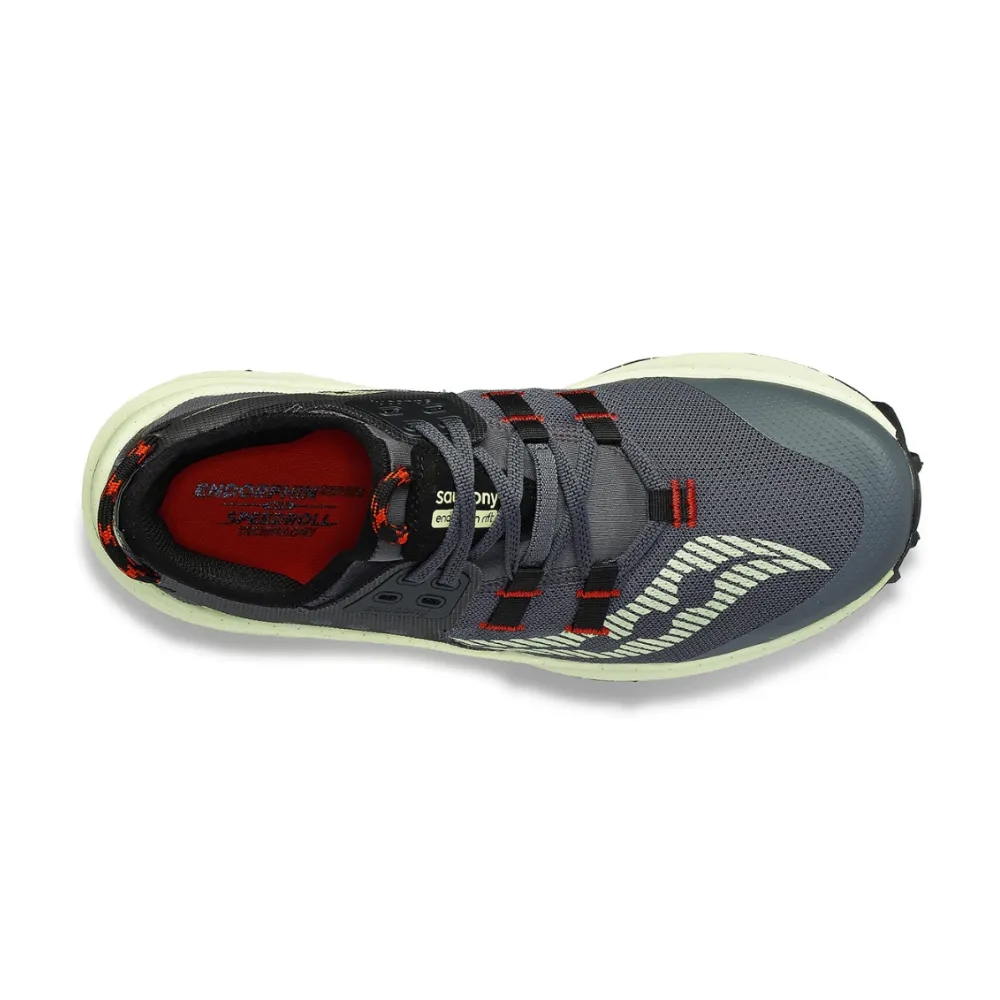 A toda velocidad. Las Endorphin Rift impresionan gracias a su amortiguación PWRRUN PB de larga duración y tecnología SPEEDROLL. Rápidas, livianas y tan espontáneas como pueden ser, estas zapatillas de velocidad con detalles estéticos únicos, pueden enfrentarse a cualquier terreno. La emoción comienza en el momento en que te atás los cordones. Animate a tirarte por esa colina y dominá tu próximo sendero.