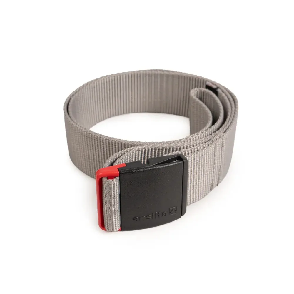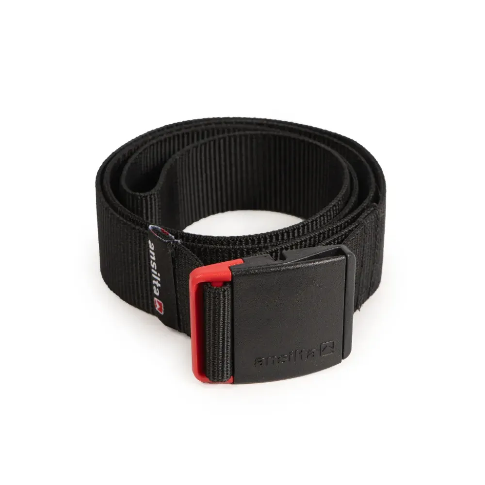 Cinturón liviano confeccionado con una cinta de Nylon de 32 mm y una hebilla plástica de accionamiento frontal.