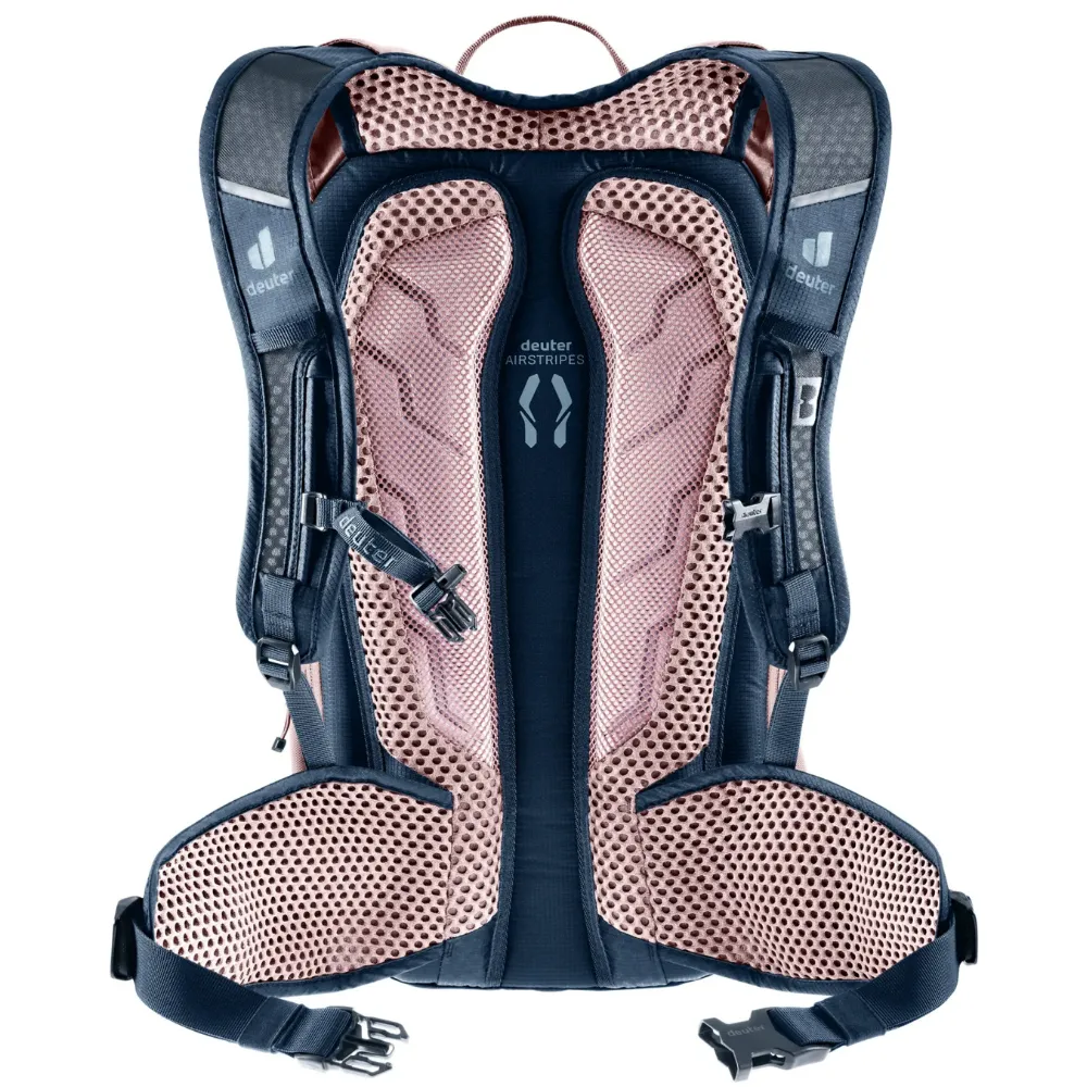El sistema de espalda Deuter Airstripes proporciona a esta mochila de ciclismo un ajuste firme y envolvente, además de ser muy versátil: cuenta con un compartimento de hidratación, un bolsillo para el móvil, un organizador de herramientas, dos bolsillos para las aletas de la cadera y dos bolsillos laterales elásticos. El volumen también se puede ampliar para obtener más espacio. Además, permite acoplar un casco de media carcasa mediante clips de fijación en la parte frontal, mientras que las correas de compresión laterales permiten acoplar un casco integral.
