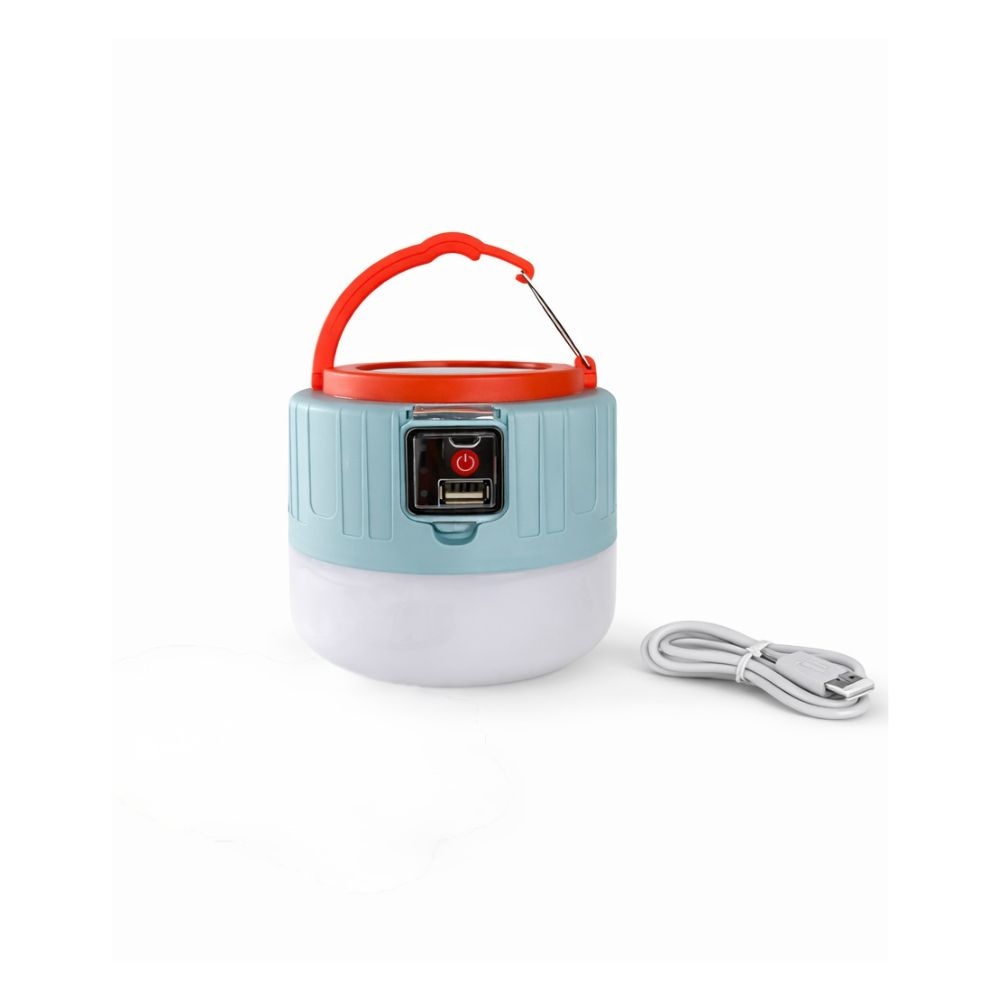 Lámpara de camping con luz LED, puerto USB y control integrado, portátil y práctica, ideal para camping, viajes o emergencias.