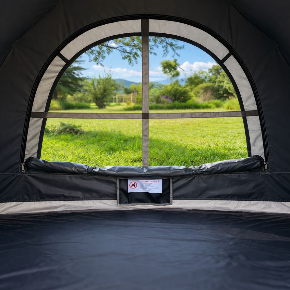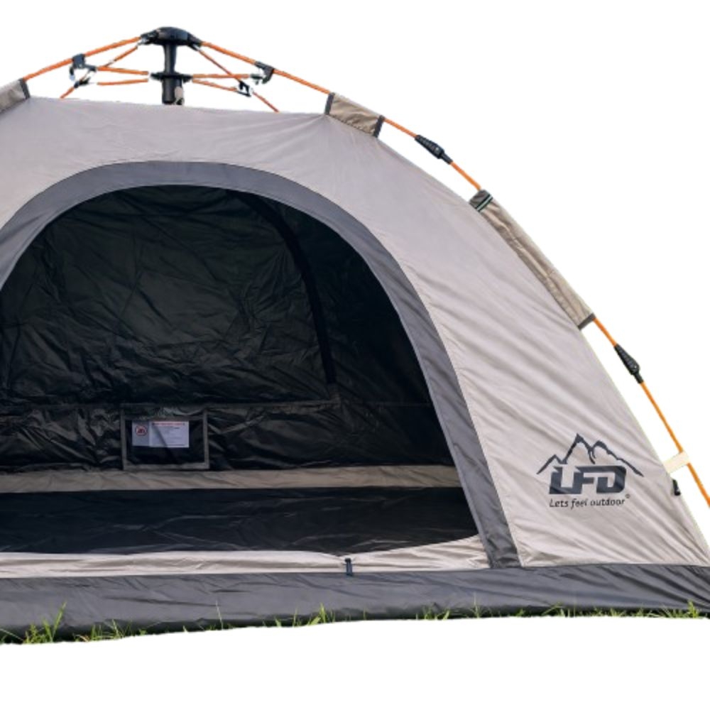 Carpa autoarmable para 4 personas (220x150x125 cm), fácil y rápida de armar, compacta y resistente, ideal para camping o escapadas al aire libre.
