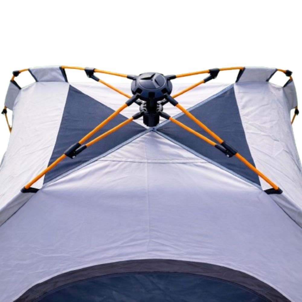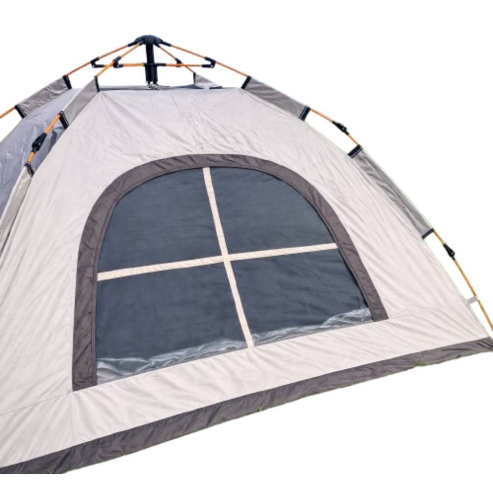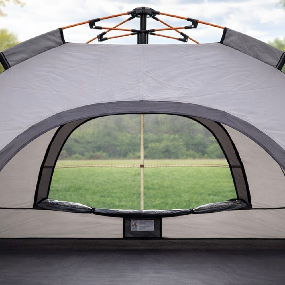 Carpa autoarmable para 6 personas (240x205x145 cm), fácil y rápida de armar, resistente y espaciosa, ideal para camping o actividades al aire libre.