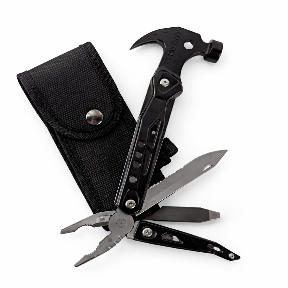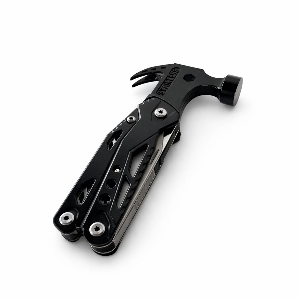 Martillo multifunción compacto con herramientas integradas, resistente y práctico, ideal para camping, reparaciones o actividades al aire libre.