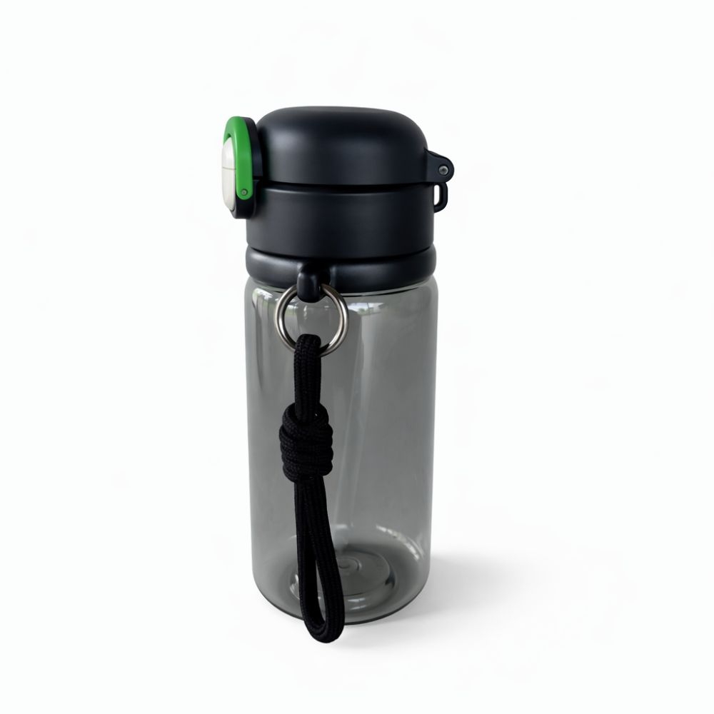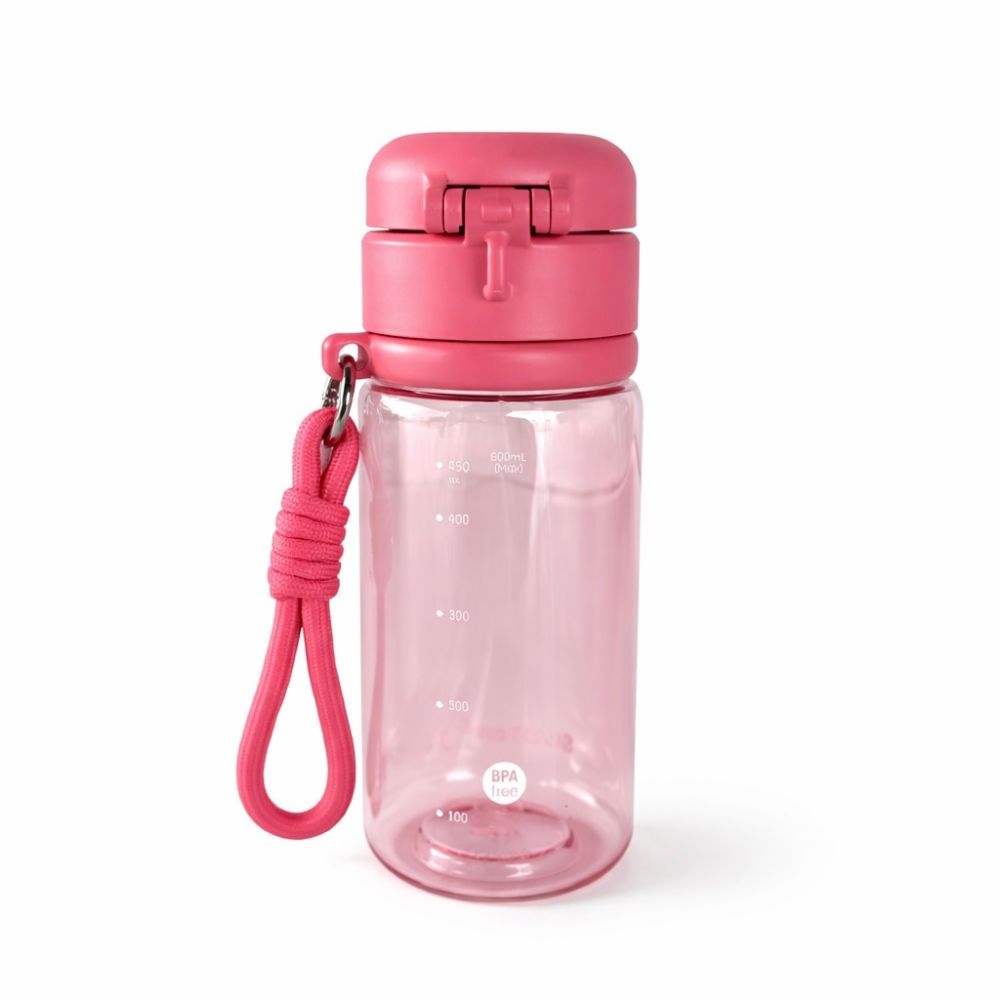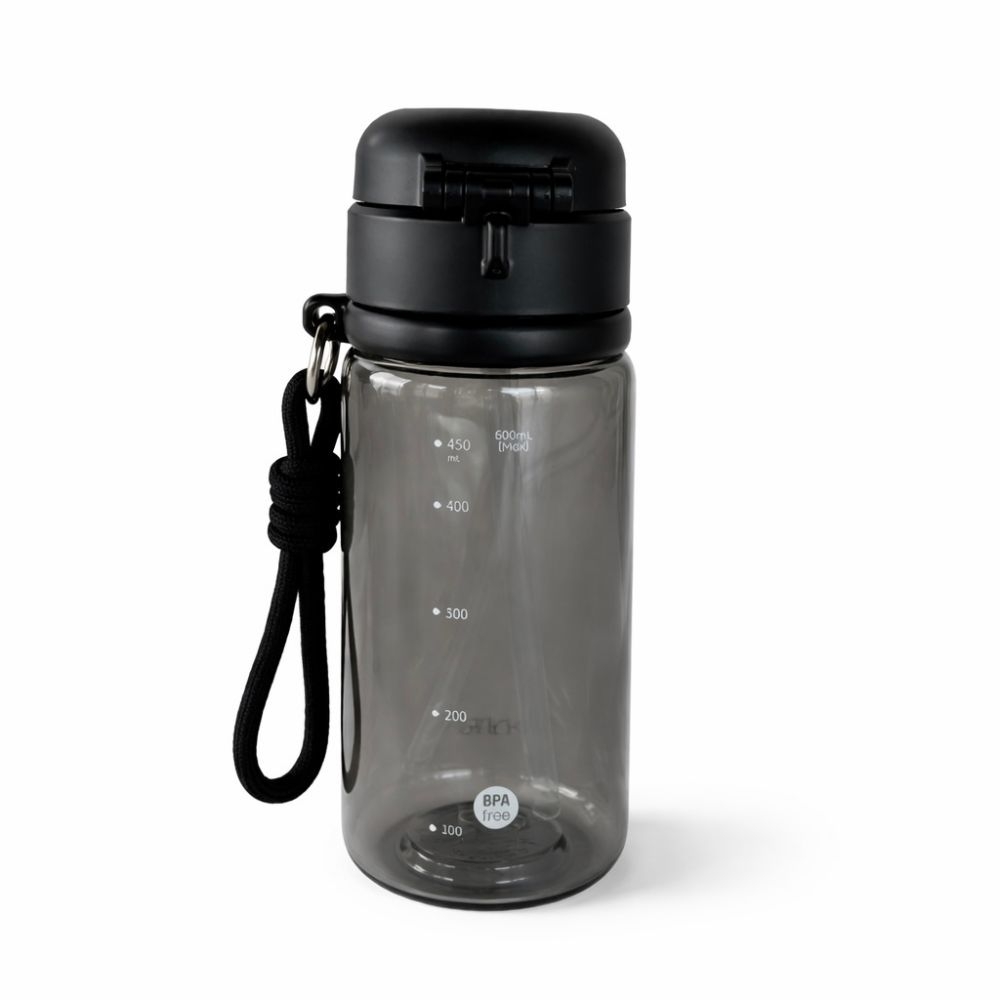 Botella deportiva Whats Up de 600 ml de plástico resistente con tapa segura y correa de transporte, ideal para gimnasio, viajes o uso diario.