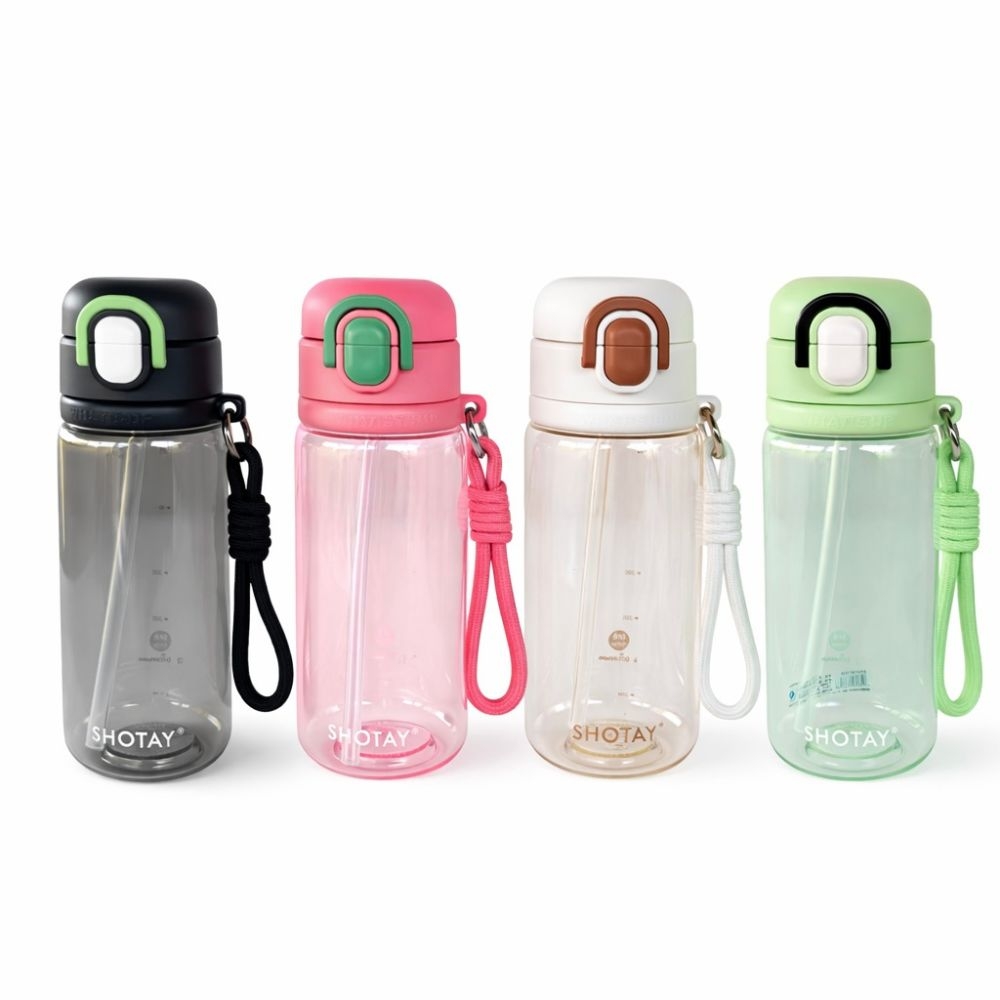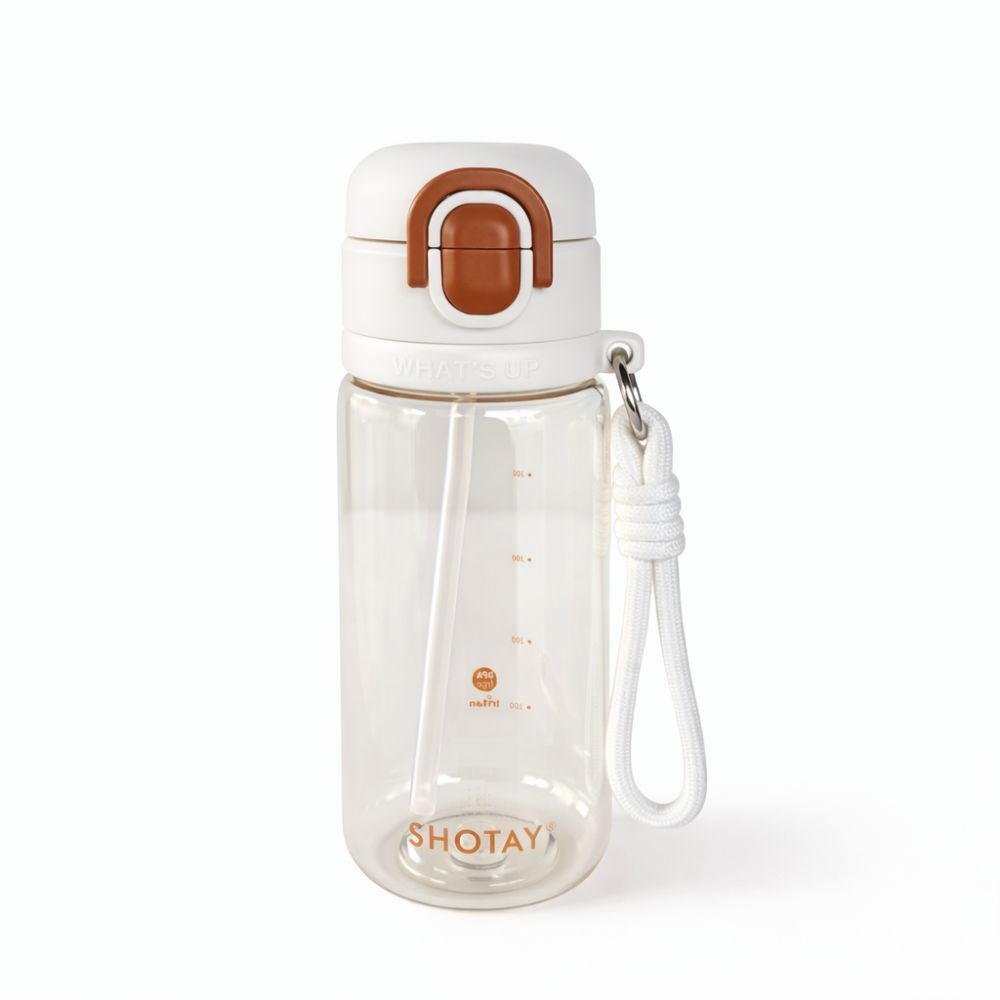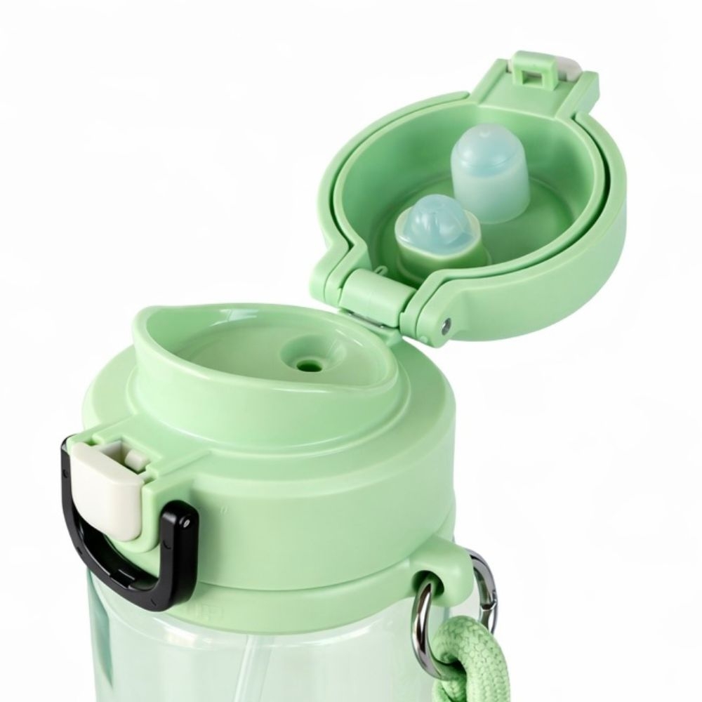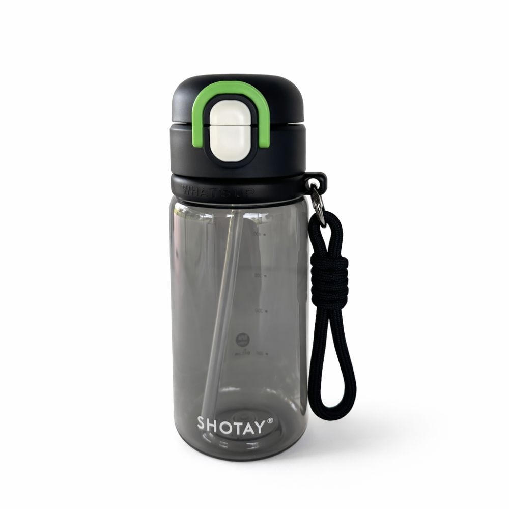 Botella deportiva Whats Up de 600 ml de plástico resistente con tapa segura y correa de transporte, ideal para gimnasio, viajes o uso diario.