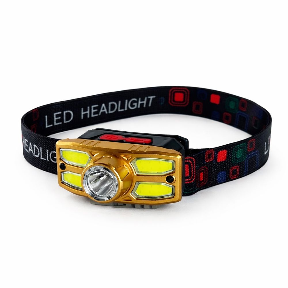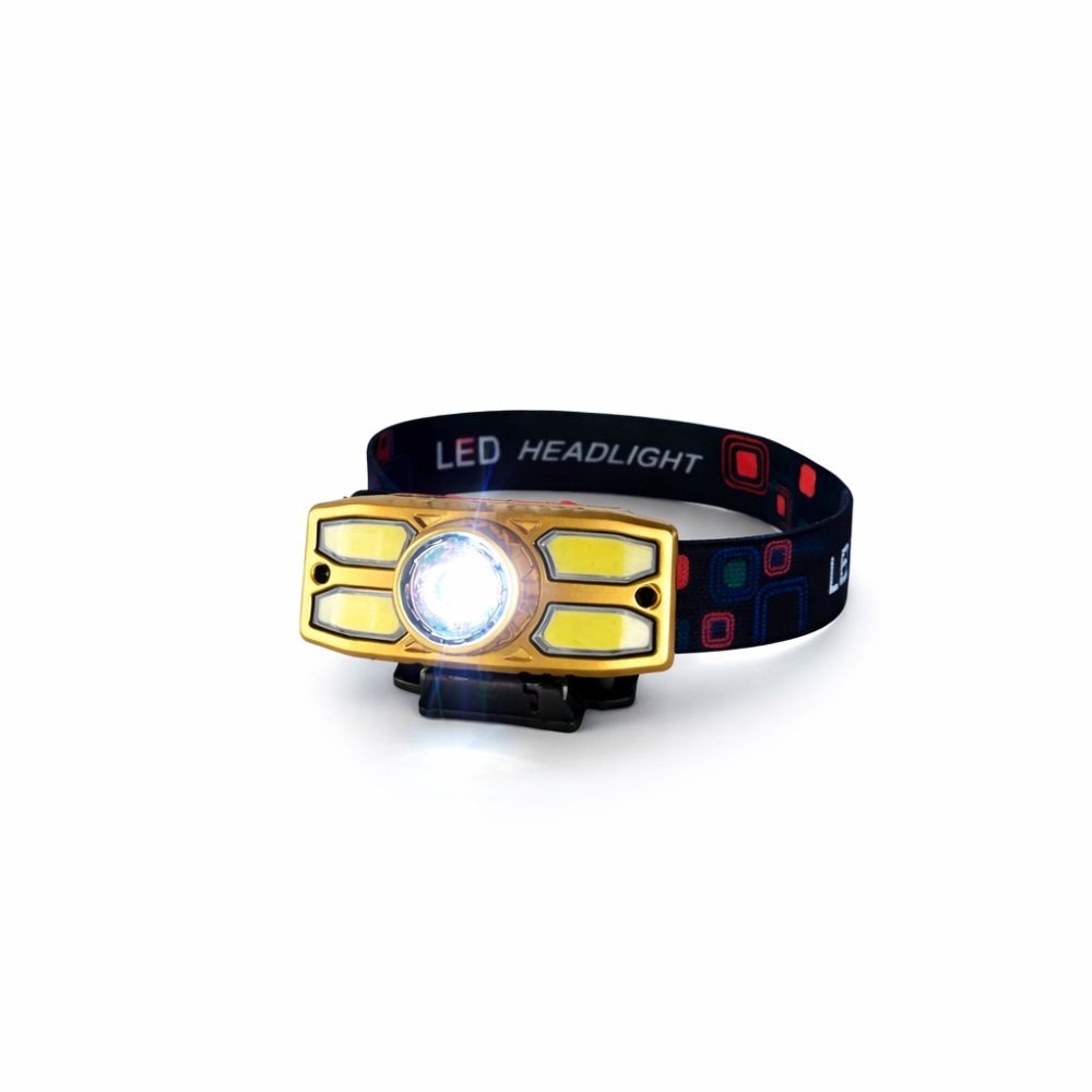 Linterna frontal LED recargable con banda ajustable, potente y cómoda, ideal para camping, trabajo o actividades al aire libre.