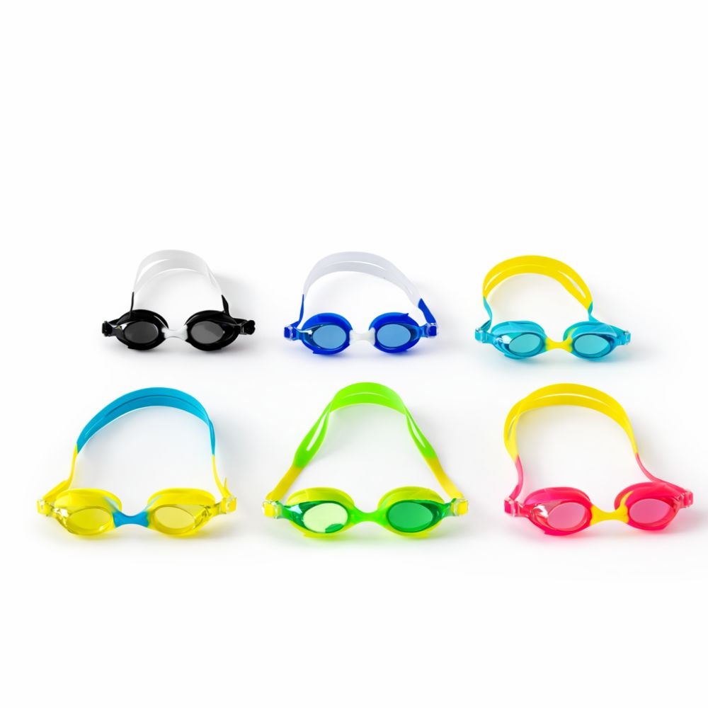 Antiparras de natación para niños con banda ajustable y estuche, cómodas y resistentes, ideales para piscina o actividades acuáticas.